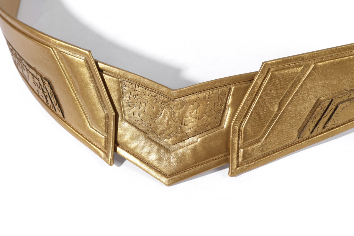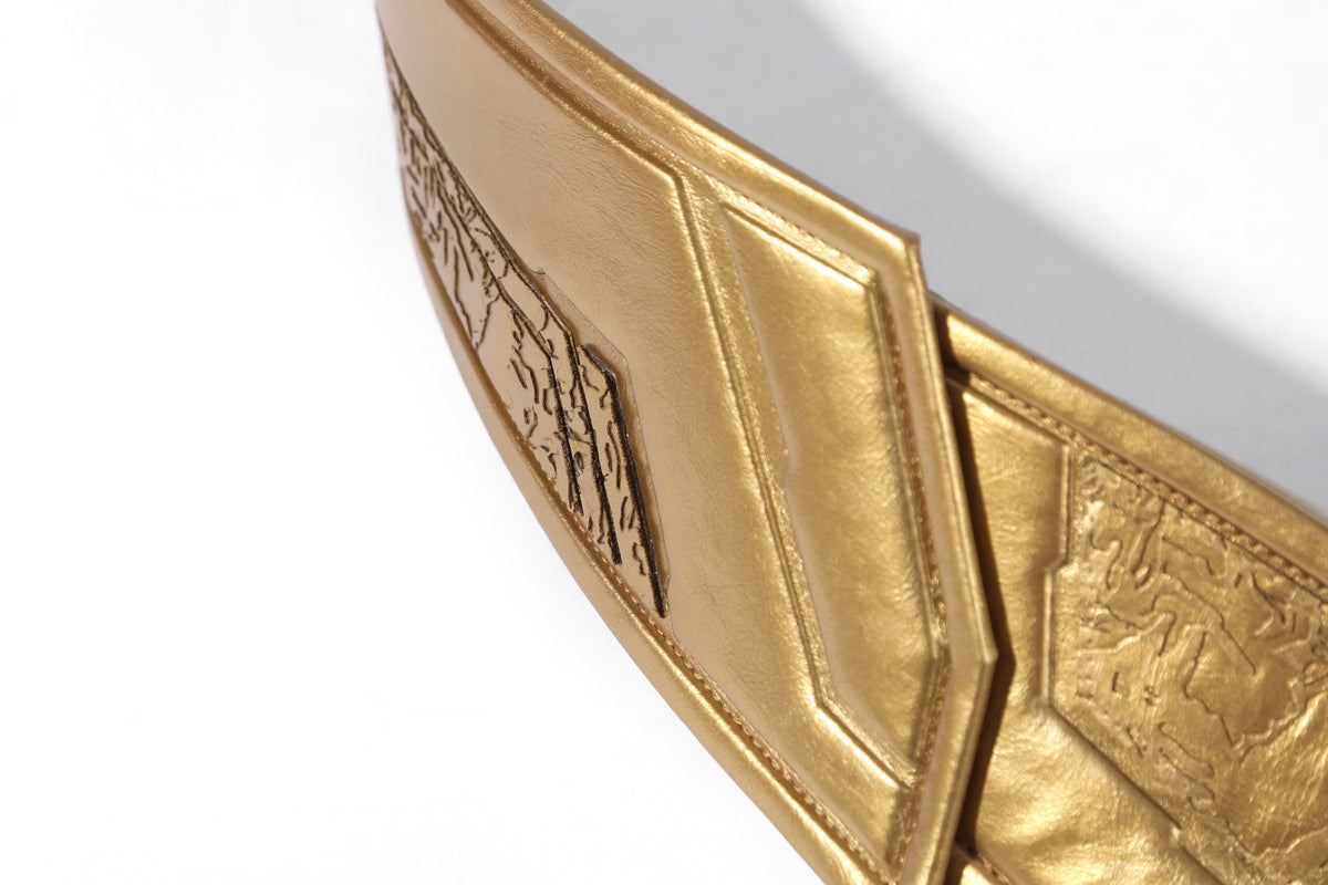 Belt: Gold leather (non-stretch)